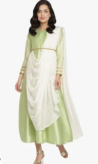 Draped sarees look like a skirt paired with a dupatta. Since the pallu and pleats are closely stitched, you can wrap these sarees without any problem.The draped saree gown is becoming a go-to option for styling on special events and occasions.